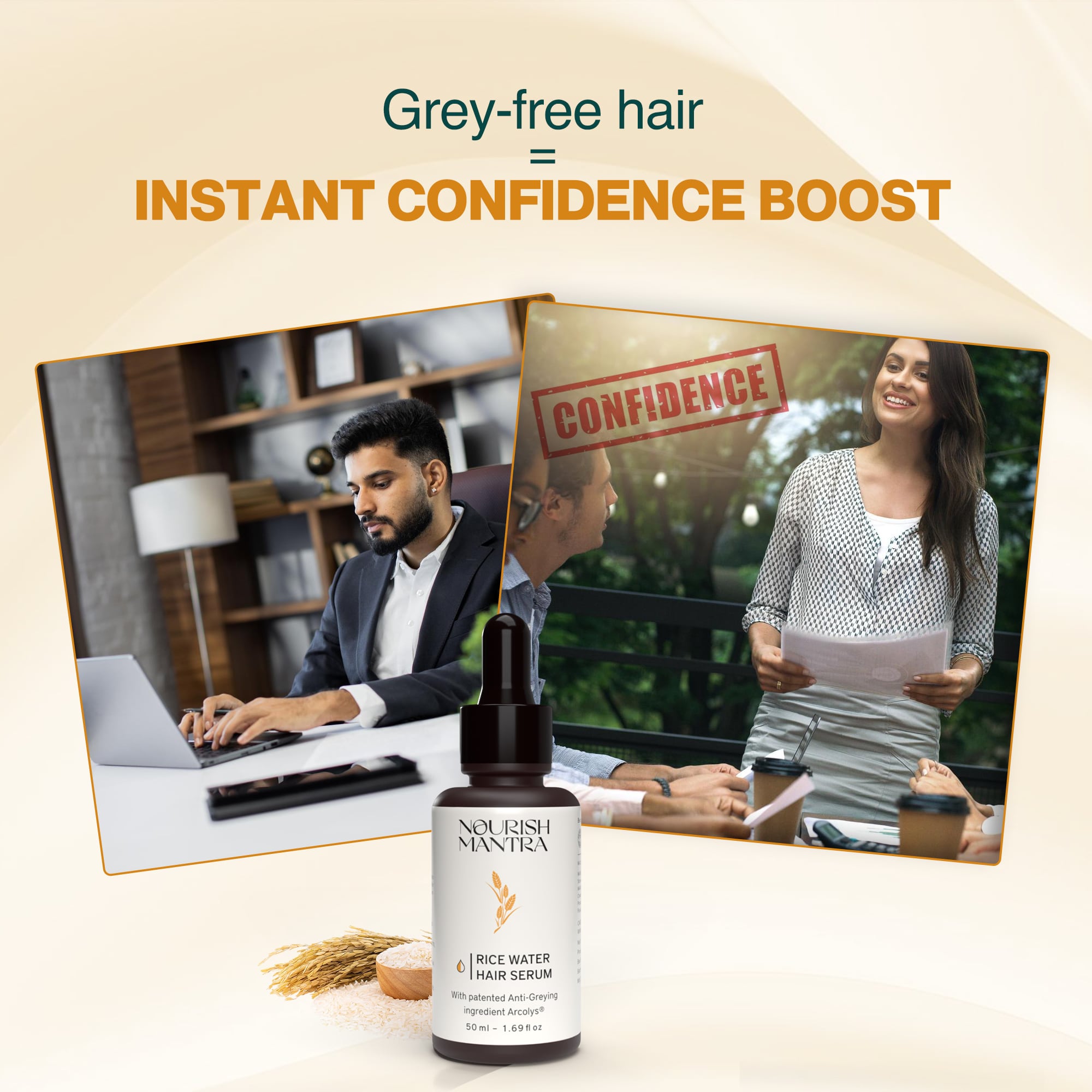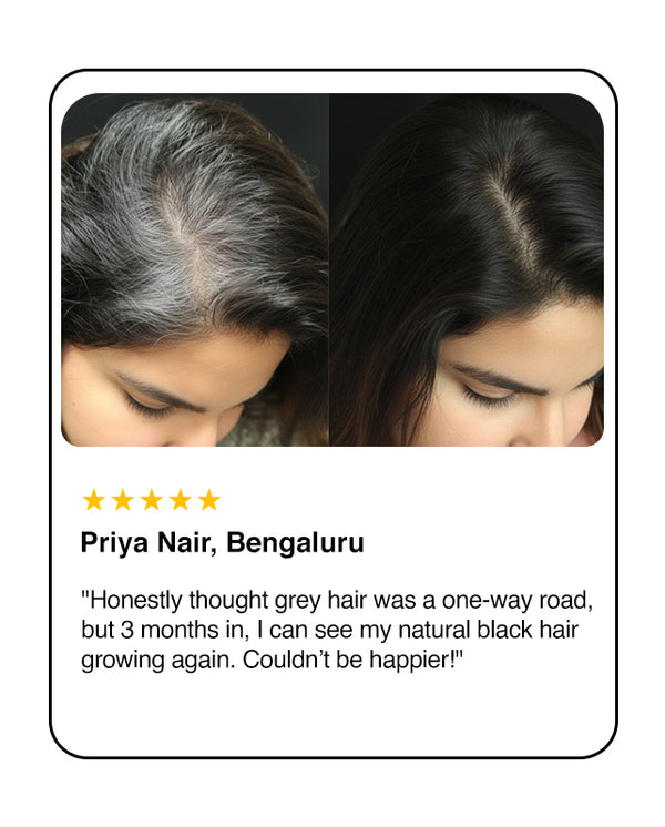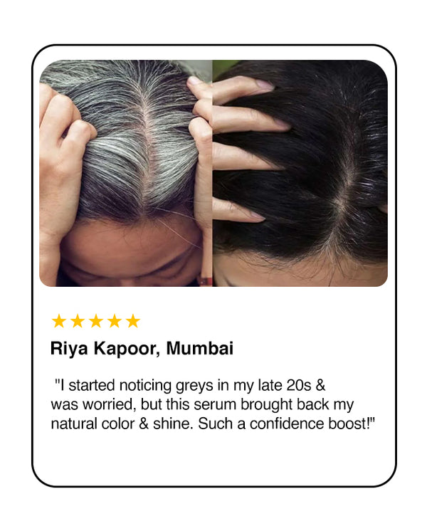 Turn back time on your tresses with Anti-Greying Rice Water Hair Serum, a breakthrough formula designed to fight premature greying and restore your natural hair pigment. Infused with the goodness of Rice Water, Acrolys, and Fenugreek Extracts, each clinically proven to combat signs of hair aging.