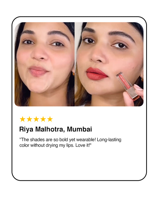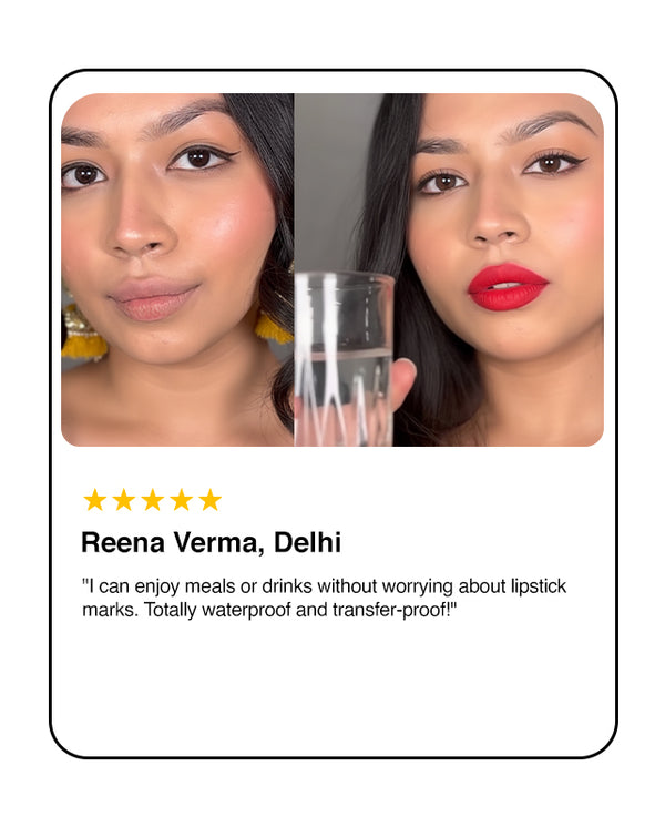 Enjoy vibrant, sleek matte lips that stay flawless through the day. Waterproof, transfer-proof, and enriched with nourishing ingredients for a comfortable, bold finish.