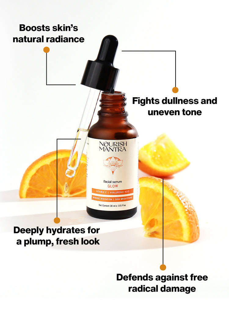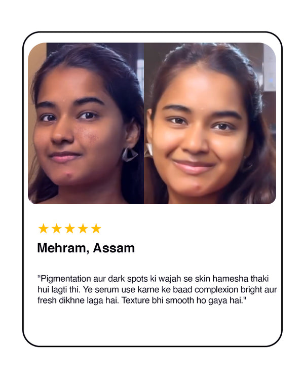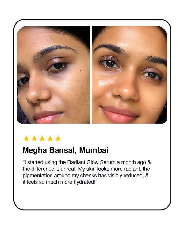 Radiant Glow Serum is a powerful yet lightweight formula crafted with Sciyurveda™ technology, a perfect blend of modern science and Ayurvedic wisdom. Enriched with Kakadu Plum, Vitamin C, and Hyaluronic Acid, it hydrates deeply, evens skin tone, and revives dull, tired skin. Kakadu Plum, nature’s richest source of Vitamin C, helps fade dark spots and boosts collagen, revealing a natural, radiant glow. Gentle, effective, and 100% vegan & cruelty-free — it’s skincare you can trust, every day.