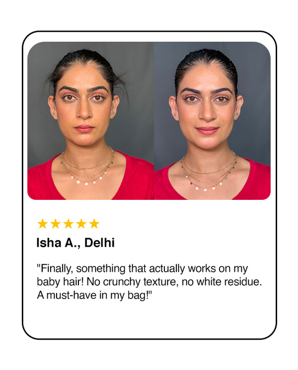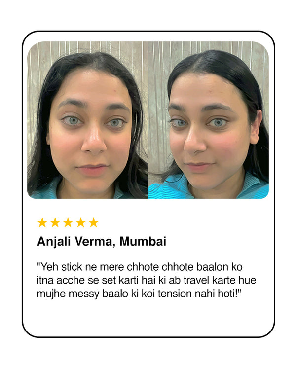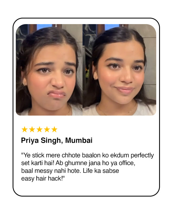Tame those baby hairs and flyaways in seconds with Nourish Mantra’s Hair Finishing Stick, your personal stylist in a tube! Powered by Sciyurveda™, a unique blend of modern science and ancient Ayurvedic wisdom, this stick is designed for quick touch-ups that smooth stubborn strands without leaving a greasy or stiff feel. The formula is enriched with hair-loving ingredients like Jojoba Oil, Argan Oil, Vitamin E, and Murumuru Butter, delivering deep hydration while reducing frizz and flyaways. Whether you're heading to a meeting or a party, this lightweight, travel-friendly stick gives your hairstyle a neat, polished look that lasts all day. No mess, no stress — just perfect hair, anytime, anywhere.